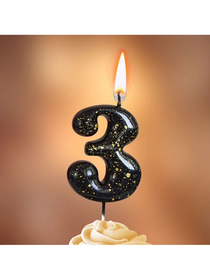 Свеча в торт "Черные брызги", цифра "3"