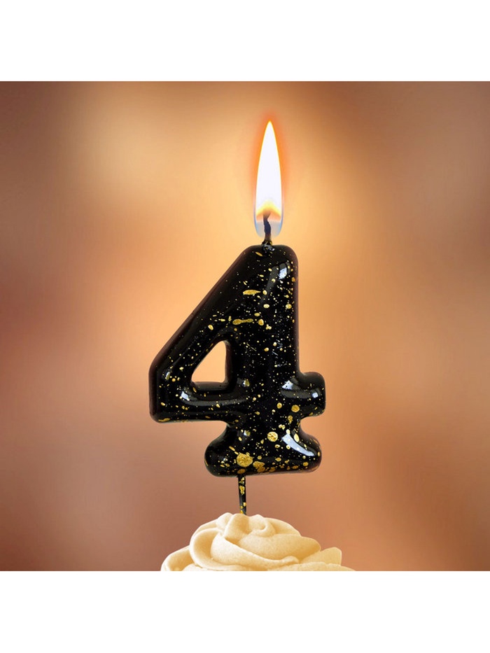 Свеча в торт "Черные брызги", цифра "4"
