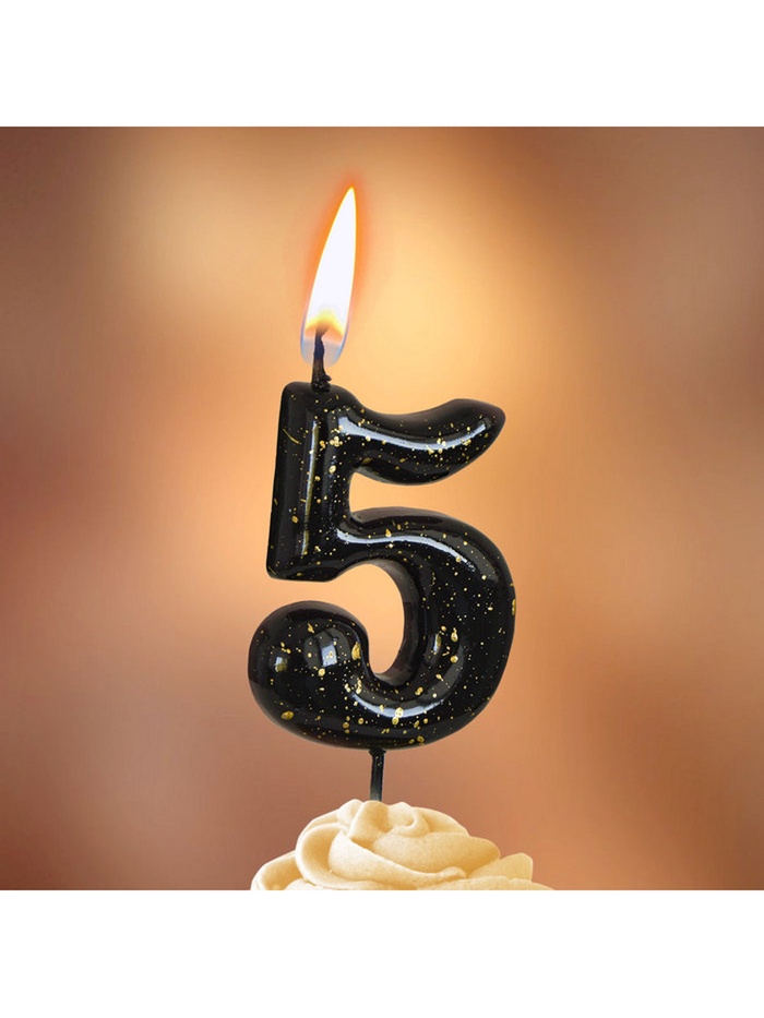 Свеча в торт "Черные брызги", цифра "5"