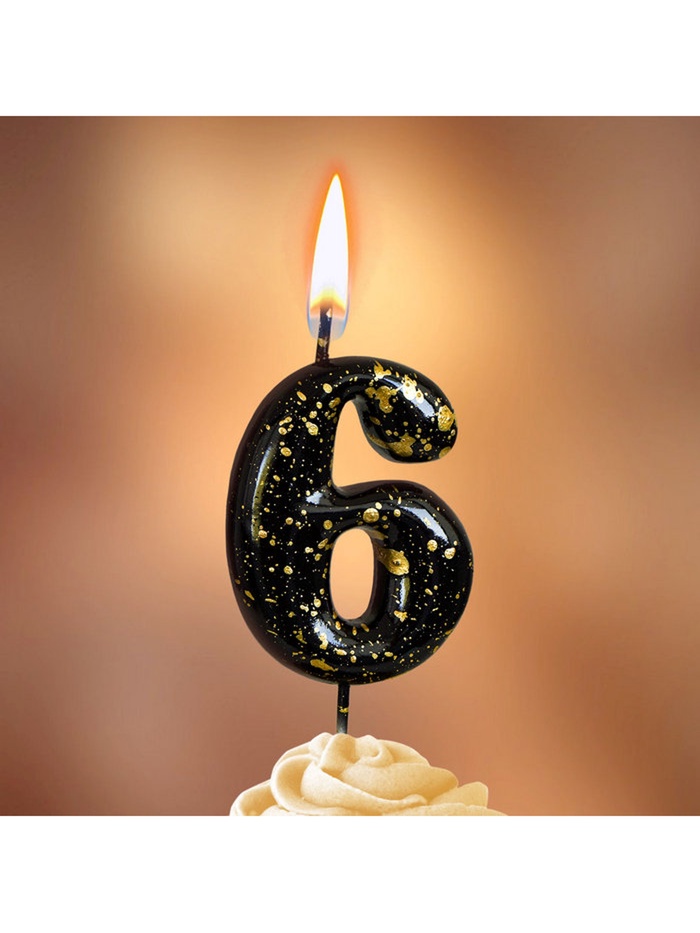 Свеча в торт "Черные брызги", цифра "6"
