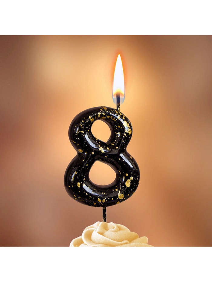 Свеча в торт "Черные брызги", цифра "8"