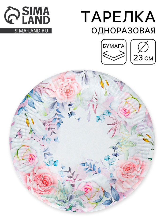 Тарелка одноразовая бумажная «Сиреневые розы», 23 см