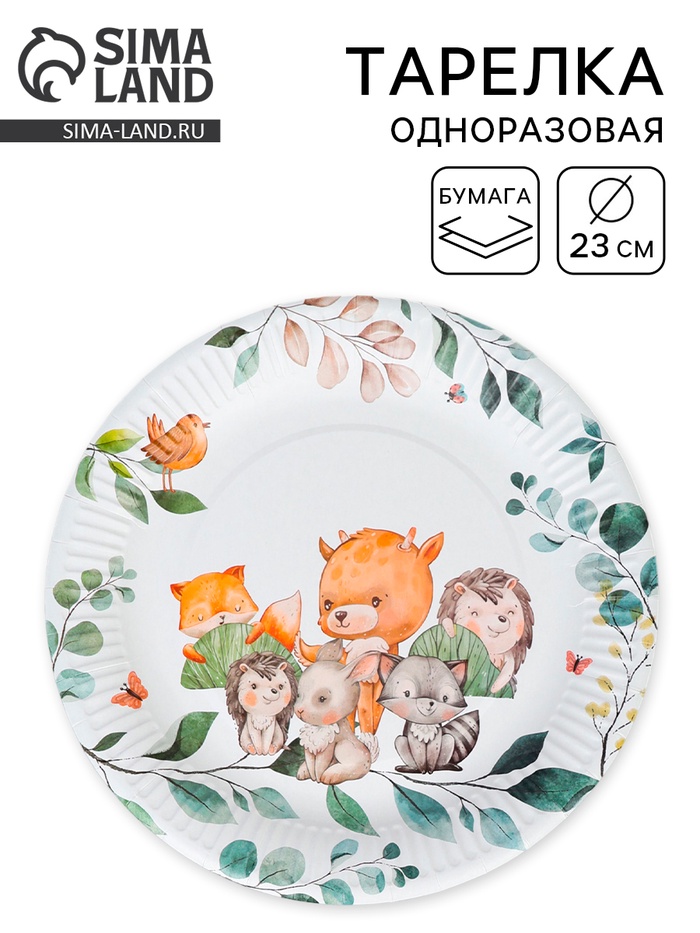 Тарелка одноразовая бумажная «С днём рождения», звери, 23 см