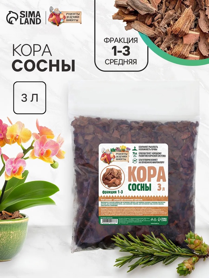 Кора сосны «Рецепты Дедушки Никиты», фр 1-3, 3 л