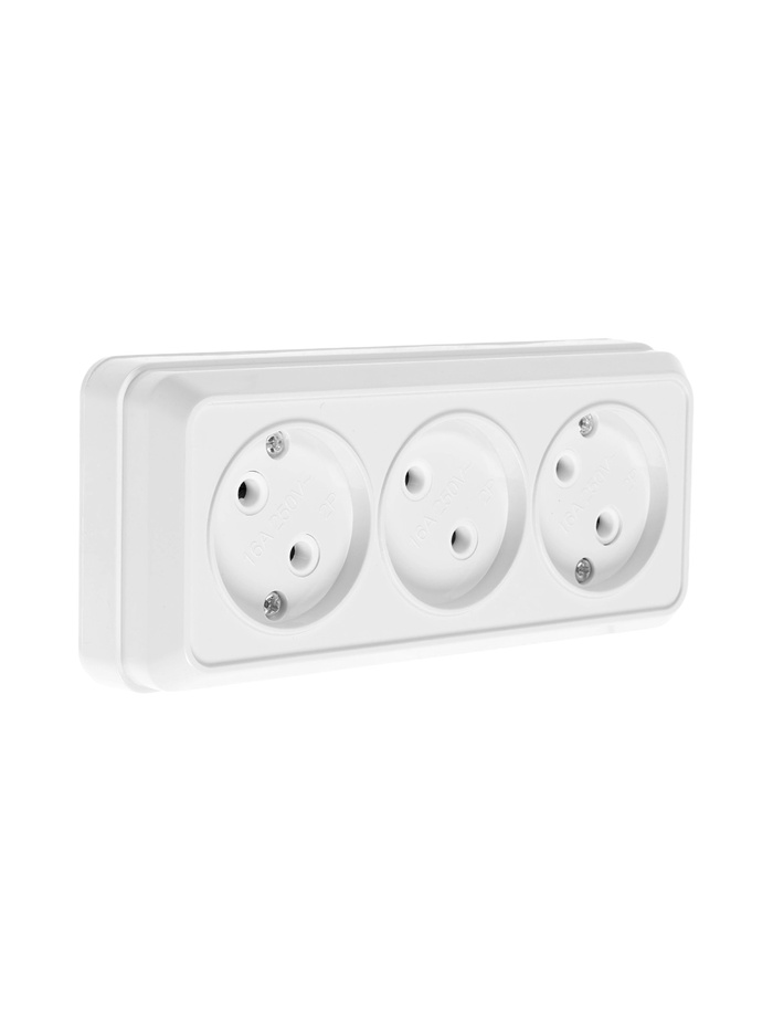 Розетка трехместная TANGO, 16 А, 250 В, IP 20, без заземления, огнеупорный ABS-пластик, белая 109815