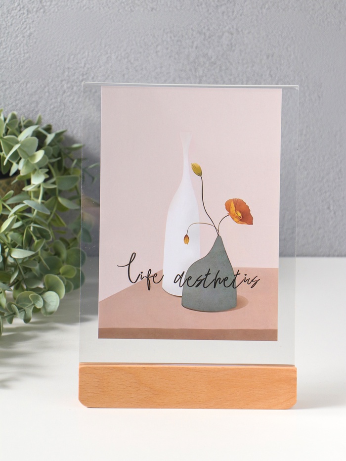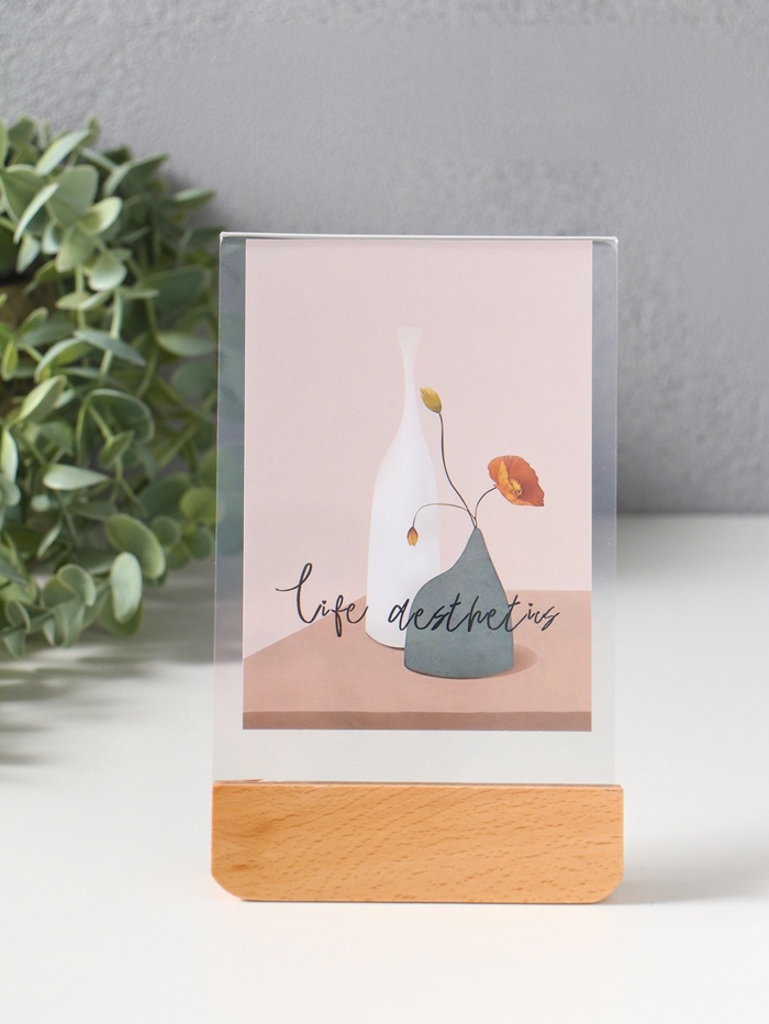 Фоторамка для фото 10×15 см «Синие цветы на белом», дерево, прозррачная, 2×10.5×17 см
