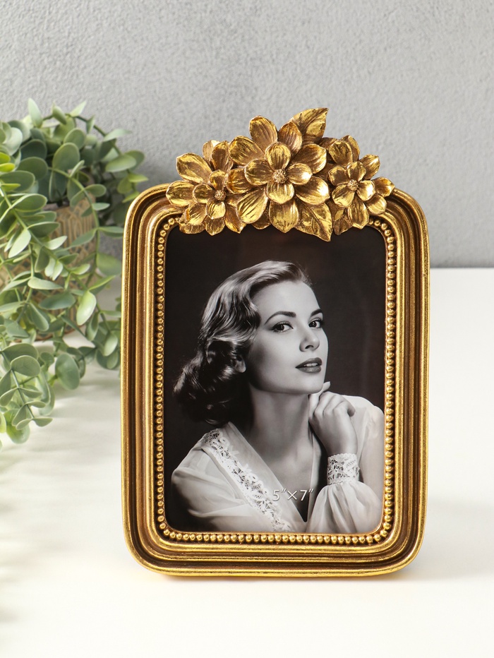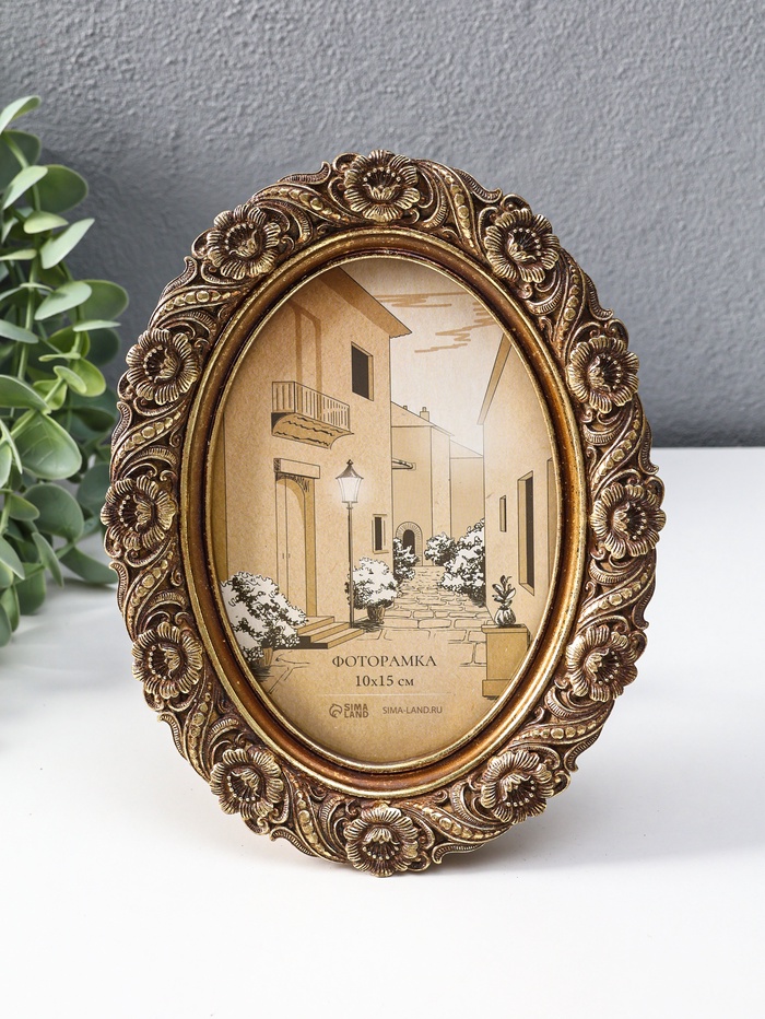 Фоторамка для фото 10×15 см «Винтажные цветы», полистоун под т. золото, 15×1.5×20 см