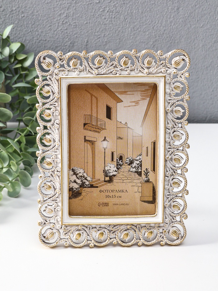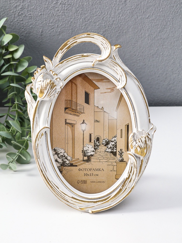 Фоторамка для фото 10×15 см «Махровые тюльпаны», полистоун, белая с золотом, 14×2.5×20 см
