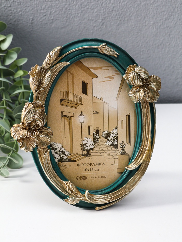 Фоторамка для фото 10×15 см «Ирисы», полистоун, зелёная с золотом, 15.5×2.5×18 см