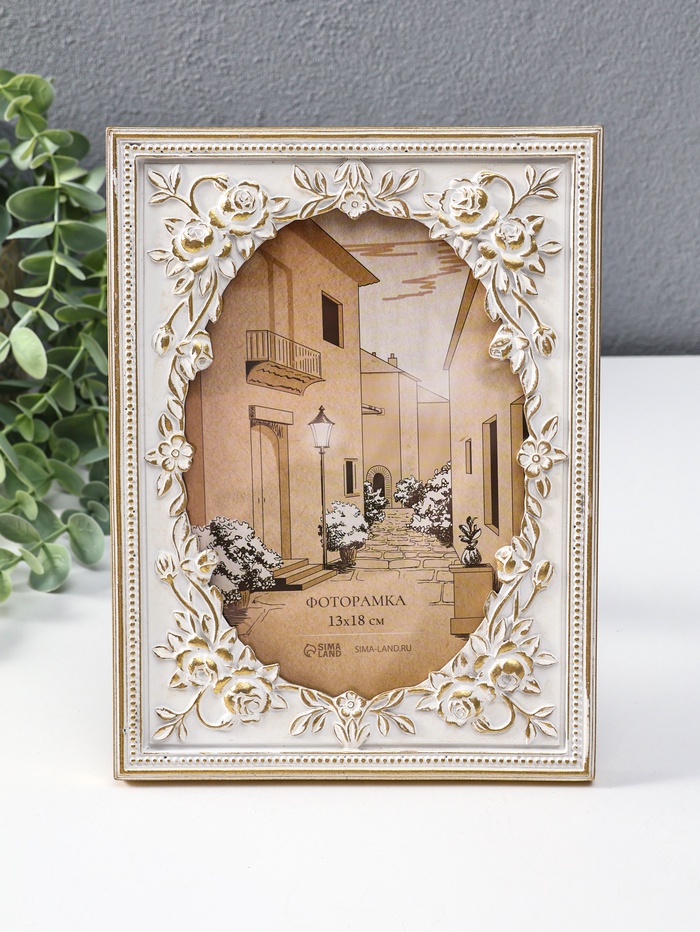 Фоторамка для фото 13×18 см «Овал в розах», полистоун, белая с золотом, 14×1.5×19 см