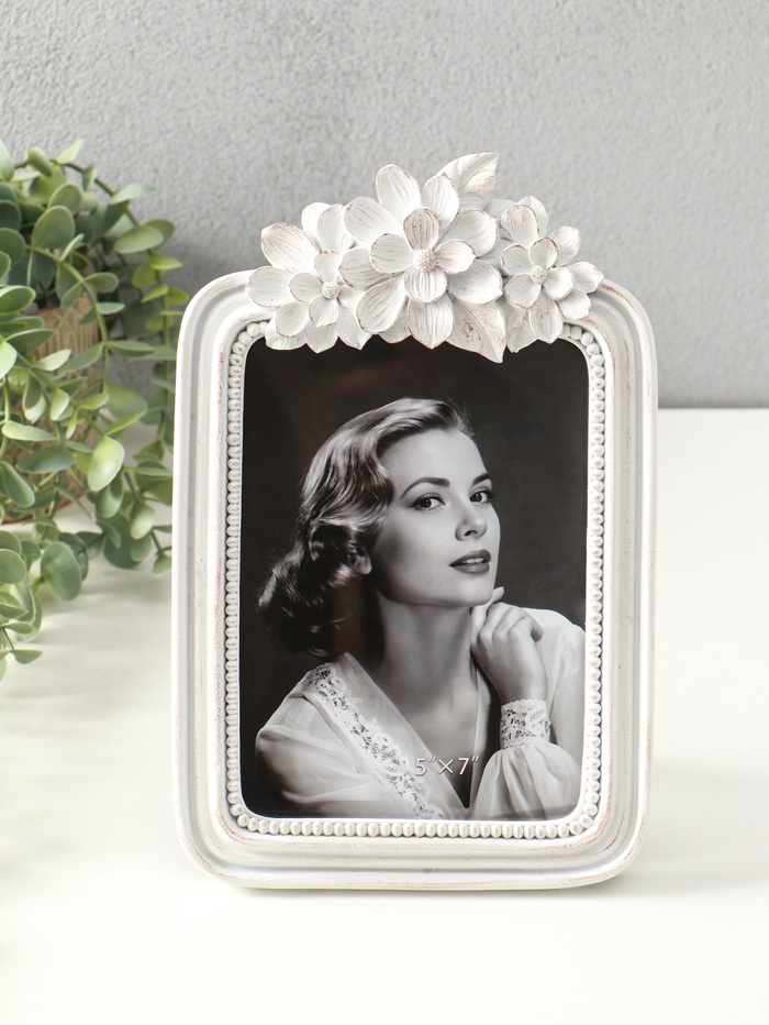Фоторамка для фото 13×18 см «Цветочный венок», полистоун, белая, 25×16.5×1.5 см
