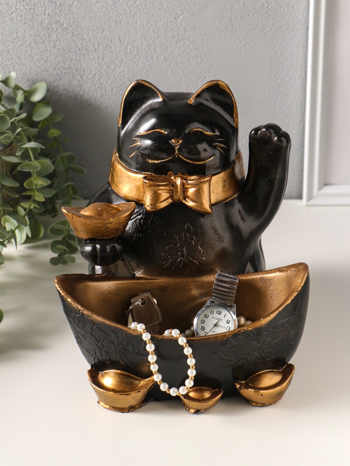 Копилка полистоун с подставкой для мелочей "Кот Манэки-Нэко" 24х21х25 см
