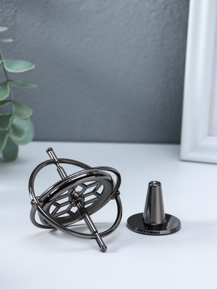 Гироскоп металлический самобалансирующийся на подставке, чёрный 7х7х13,2 см