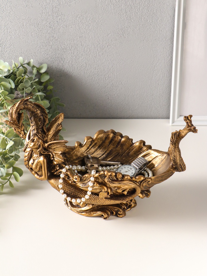 Подставка для мелочей "Девушка с драконом" 20,5х32х17 см, бронза