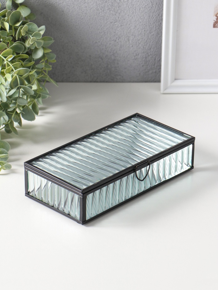 Шкатулка стекло с металлическим каркасом "Линии" прозрачная 10х20х4,3 см