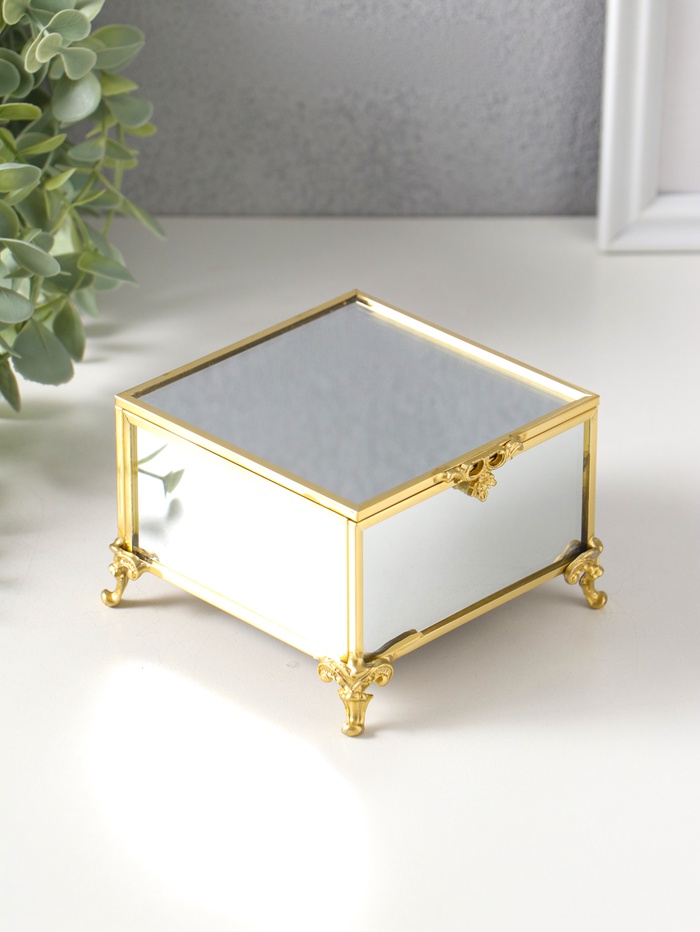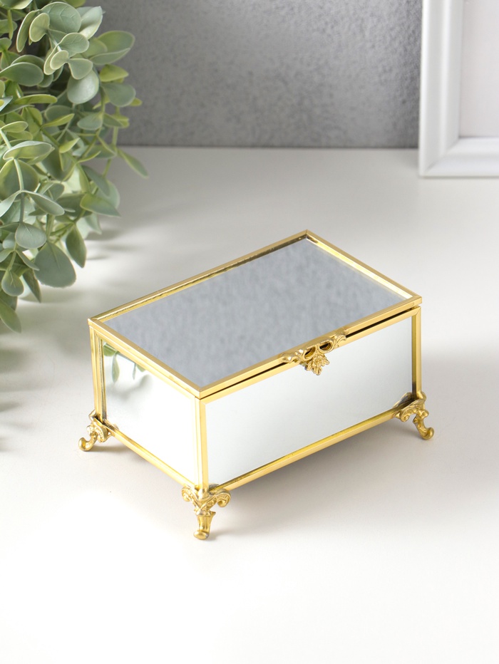 Шкатулка стекло с металлическим каркасом "Зеркальная на ножках" золото 12х8х7,3 см