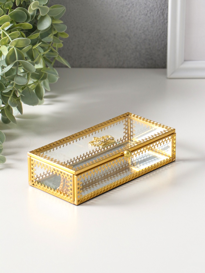 Шкатулка для украшений «Прямоугольник с гранями», стекло, с металлическим каркасом, золото, 7×10.5×17 см