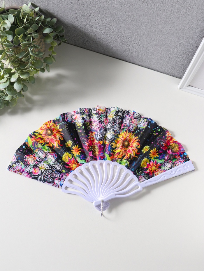 Веер пластик, текстиль "Подсолнухи и мехенди" 22,5 см