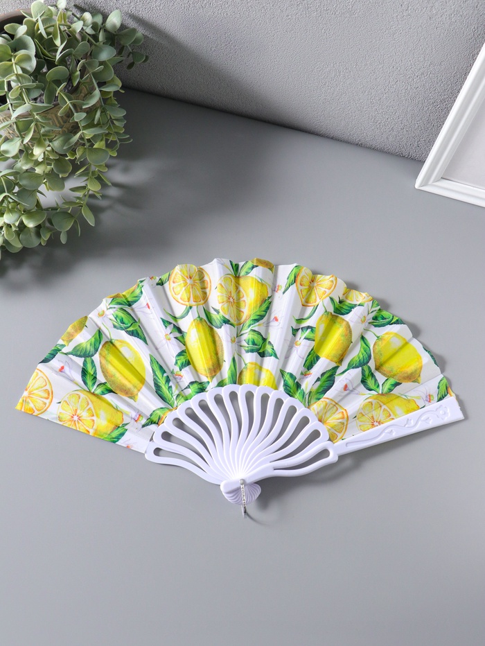 Веер пластик, текстиль "Цветение лимонов" 22,5 см