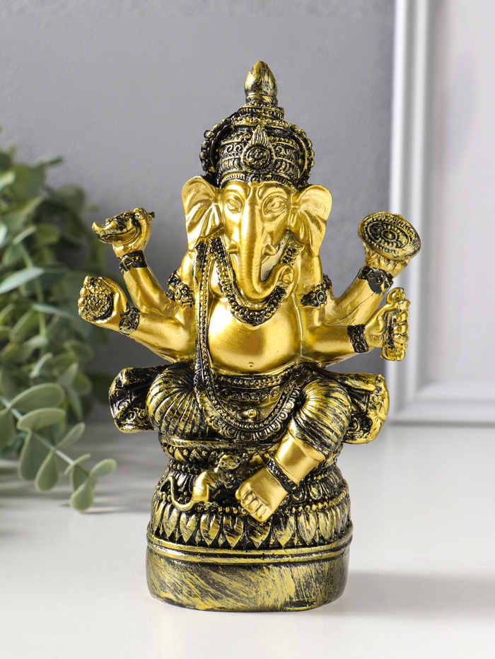 Сувенир полистоун "Ганеша в украшениях" бронза 5,5х10,5х17,5 см