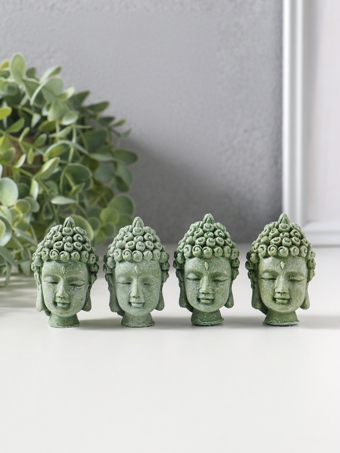 Сувенир полистоун "Голова Будды" набор 4 шт зелёный 3,3х3,7х5,5 см