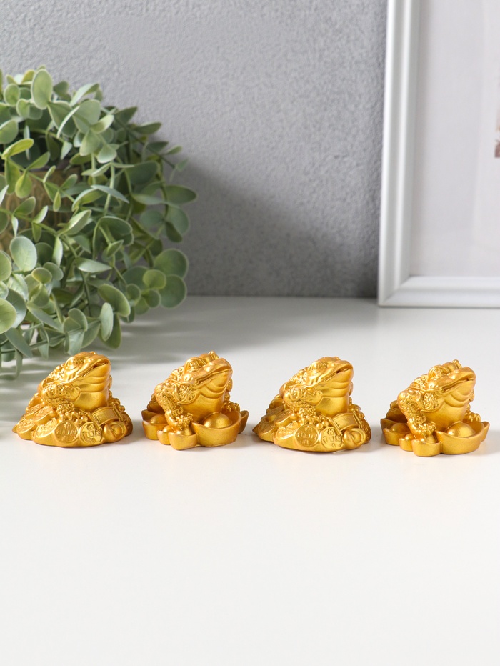 Сувенир полистоун "Денежная жаба и 3 слитка" набор 4 шт золото 4,8х4,5х4,2 см