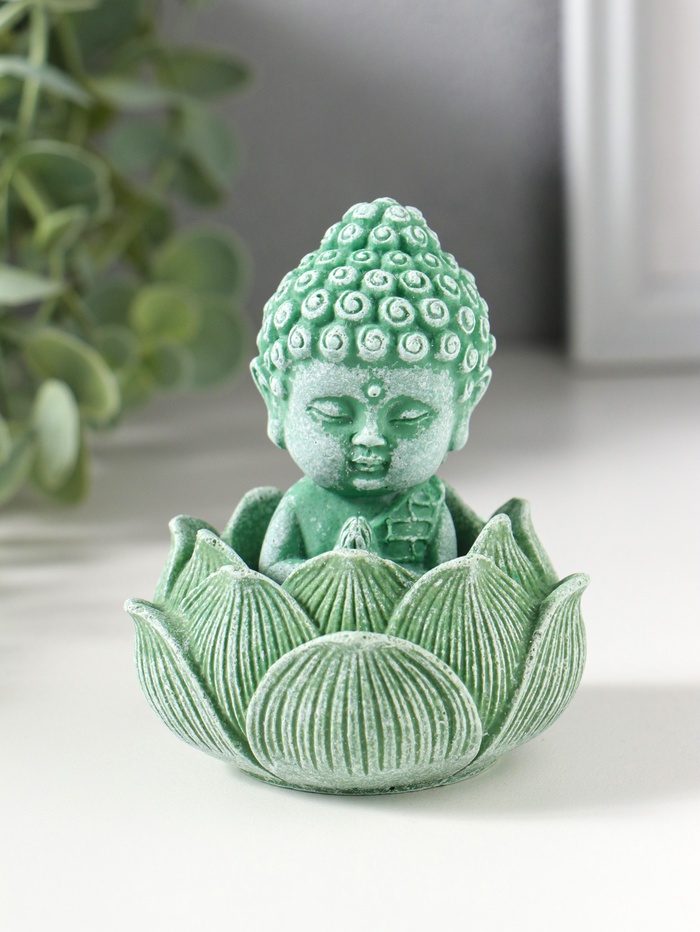 Сувенир полистоун "Лотос и маленький Будда" зелёный 7,5х7,5х9,5 см