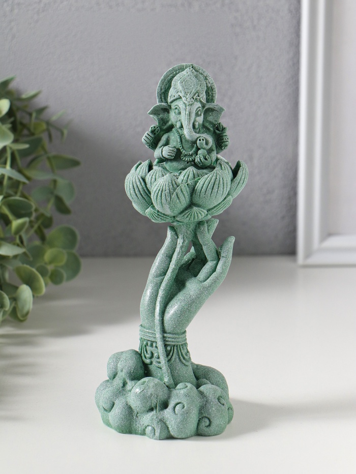 Сувенир полистоун "Рука с лотосом и Ганешей" зелёный 7х7,3х18,5 см