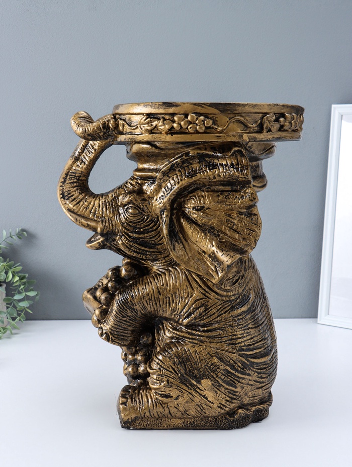 Фигура-подставка "Слон сидя" чёрный с золотом, 44х37х30 см
