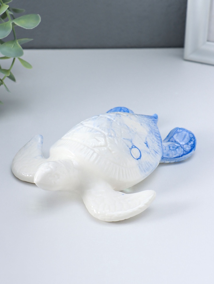 Сувенир керамика "Черепаха" бело-синий 14,5х12,5х4,8 см