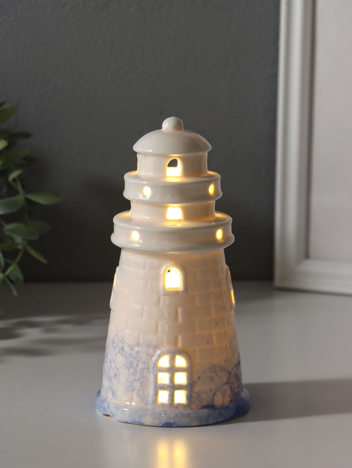 Сувенир керамика свет "Маяк" бело-синий 8х8х15,5 см