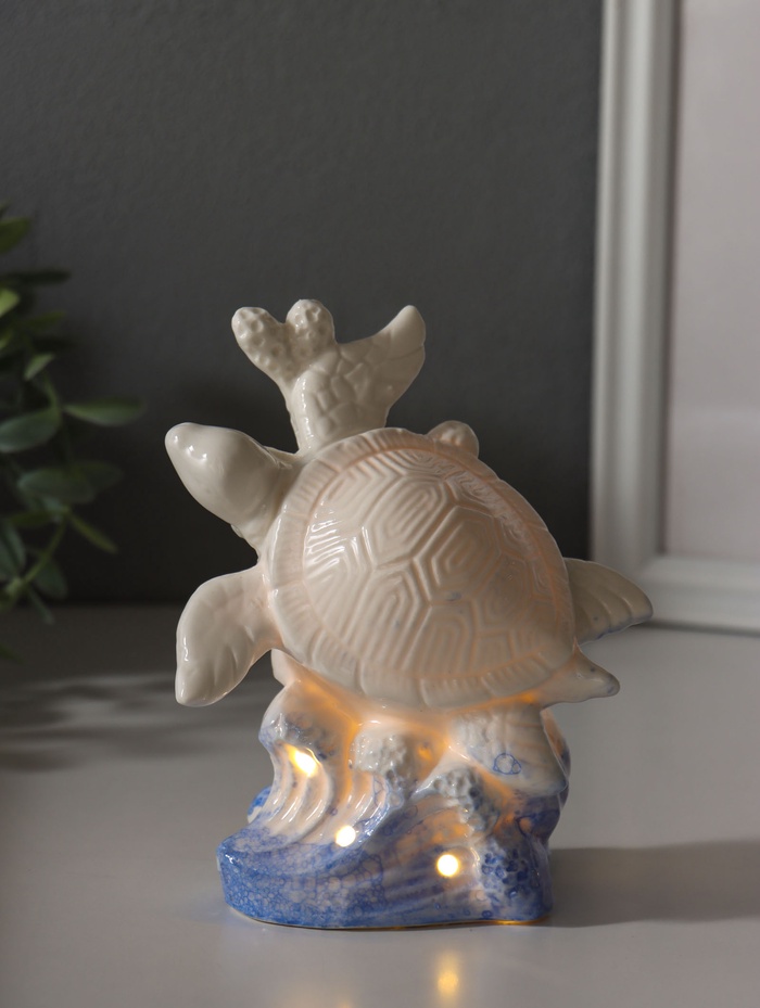Сувенир керамика свет "Черепаха в кораллах" бело-синий 8х11,5х14 см