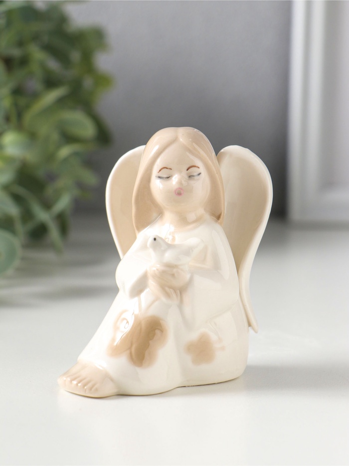 Сувенир керамика "Девочка-ангел в платье с бабочками, с голубем на руке" 7х5,4х7,8 см