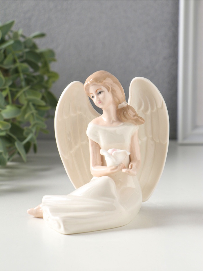 Сувенир керамика "Девушка-ангел в белом платье, с белой розой в ладонях" 11,3х10х9,8 см