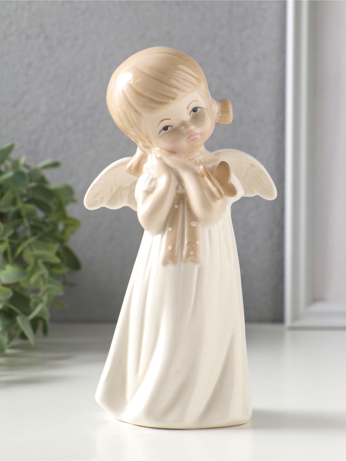 Сувенир керамика "Девочка-ангел в платьице с бантиком, держит сердце" 8,8х7,5х10,3 см