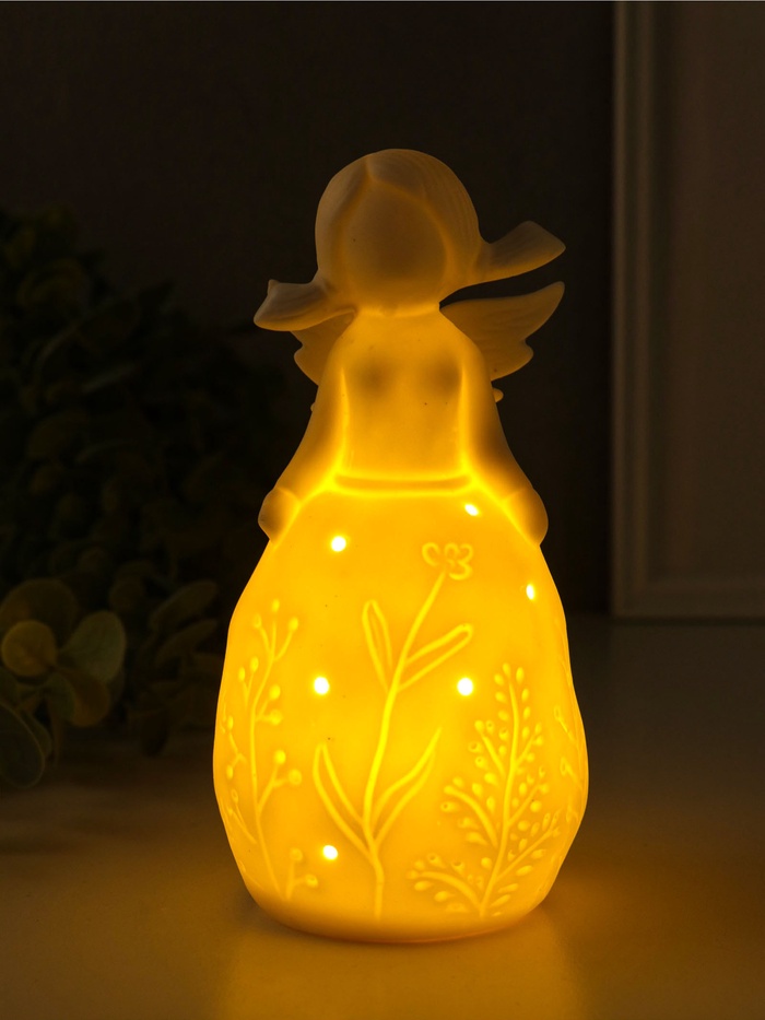 Сувенир керамика свет "Девочка в платье с растениями" белый 3хLR44 6,6х6,2х13,5 см