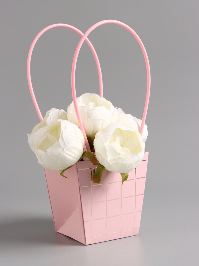 Сумка для цветов розовая влагостойкая, 13x9.5x13±5% см