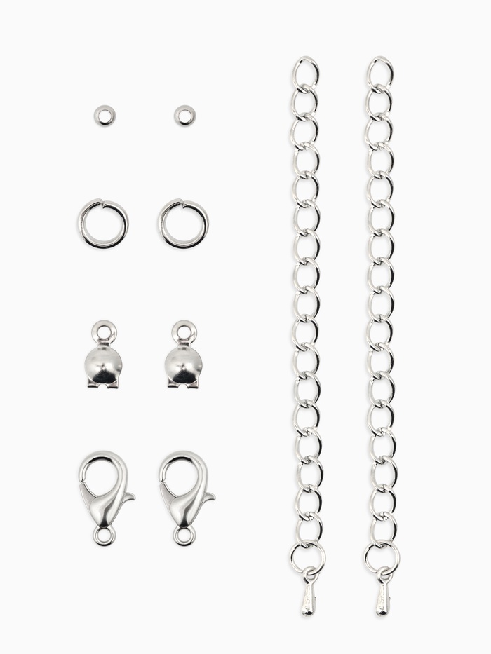 Набор для создания украшений "Минимум" колечки, кримпы, цепочки, цвет серебро