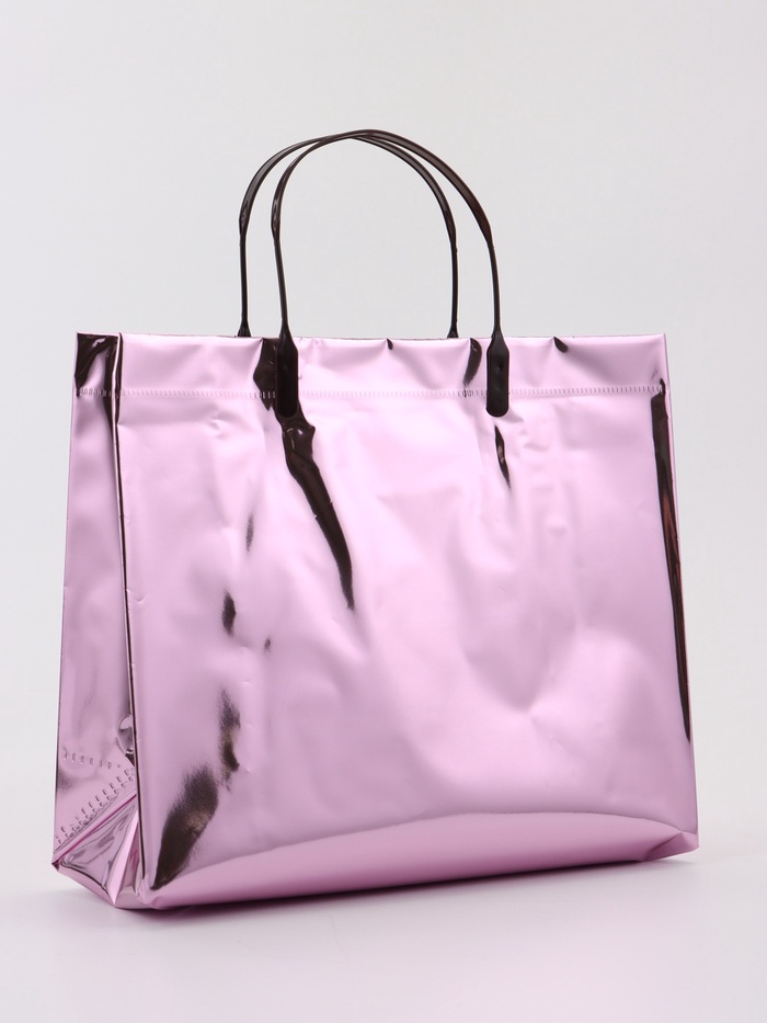 Пакет подарочный ПВХ, голография, розовый, пластиковая ручка, 50×42×12 см