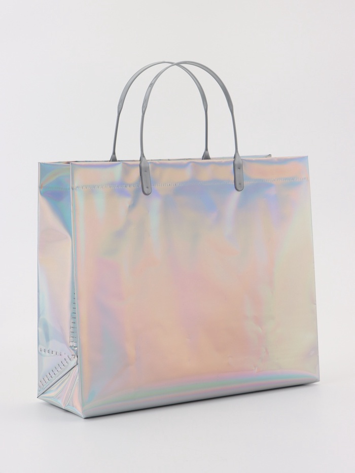Пакет подарочный ПВХ, голография, серебро, пластикова ручка, 32×28×11 см