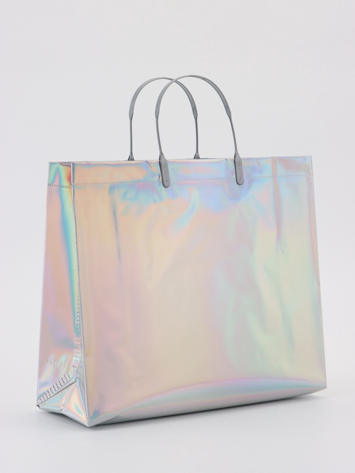 Пакет подарочный ПВХ, голография, серебро, пластиковая ручка, 26×22.5×10 см