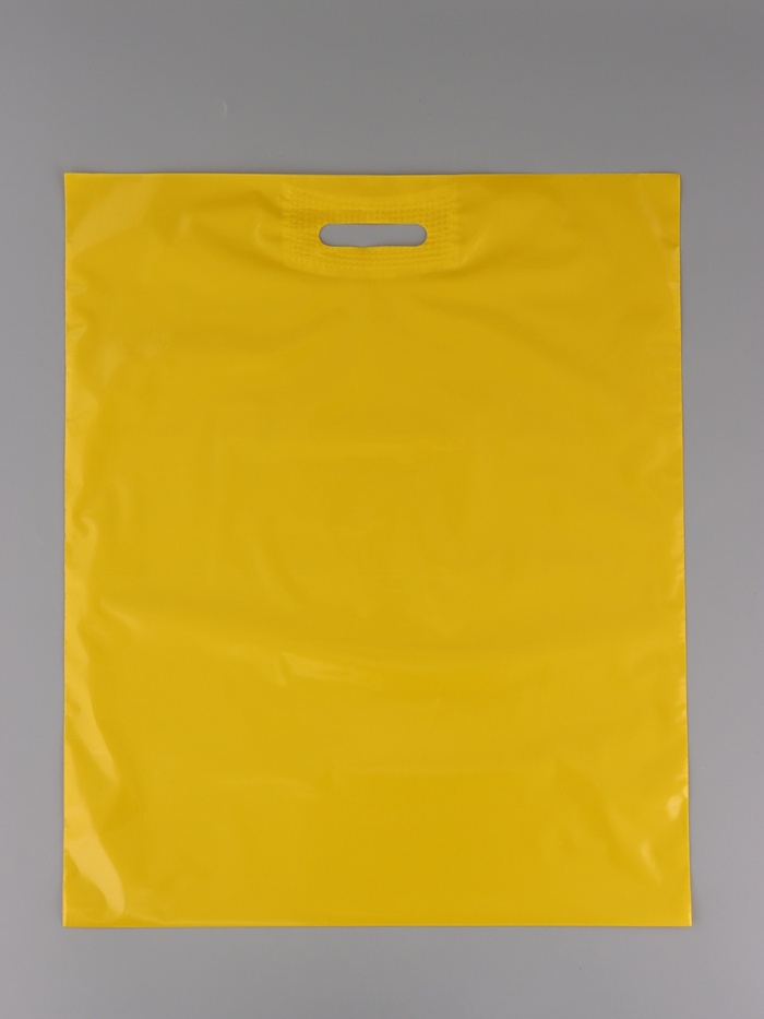 Пакет с вырубной усиленной ручкой ПВД 40х50 45 мкм Желтый