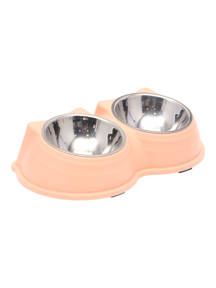 Миска металлическая двойная на пластиковом основании "Кисы", 28 х 16,3 х 7,3 см, розовая