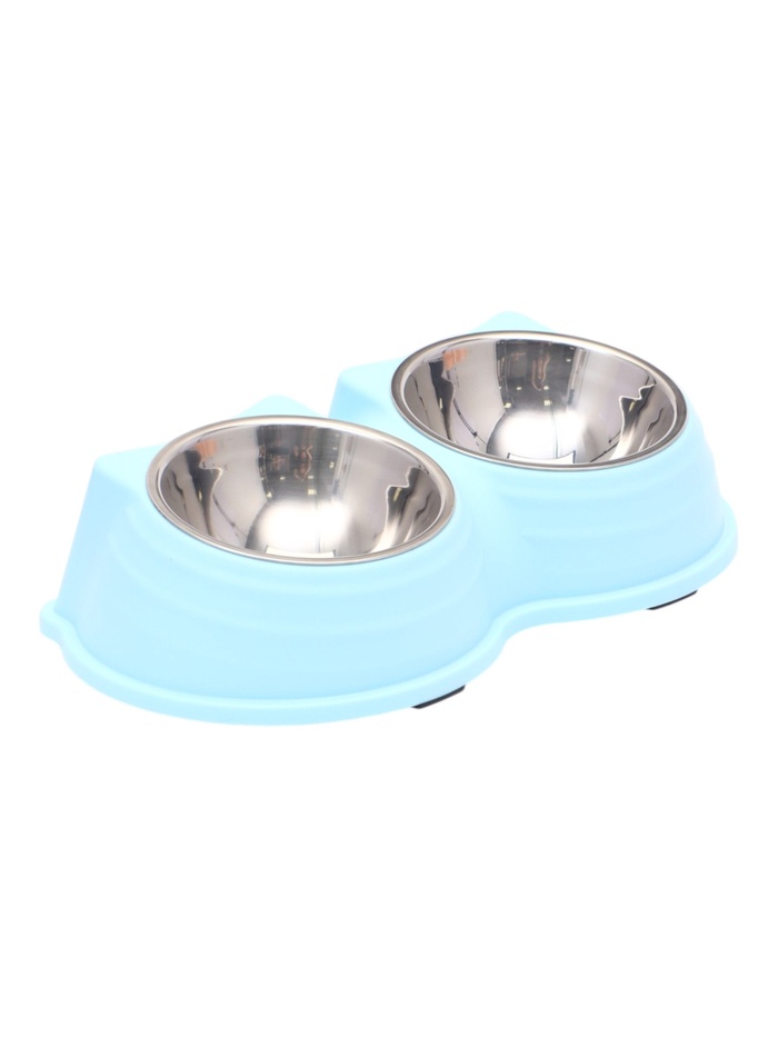 Миска металлическая двойная на пластиковом основании "Кисы", 28 х 16,3 х 7,3 см, голубая