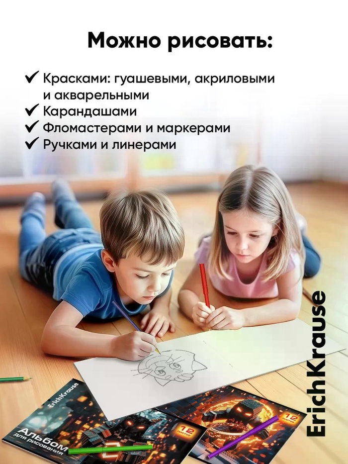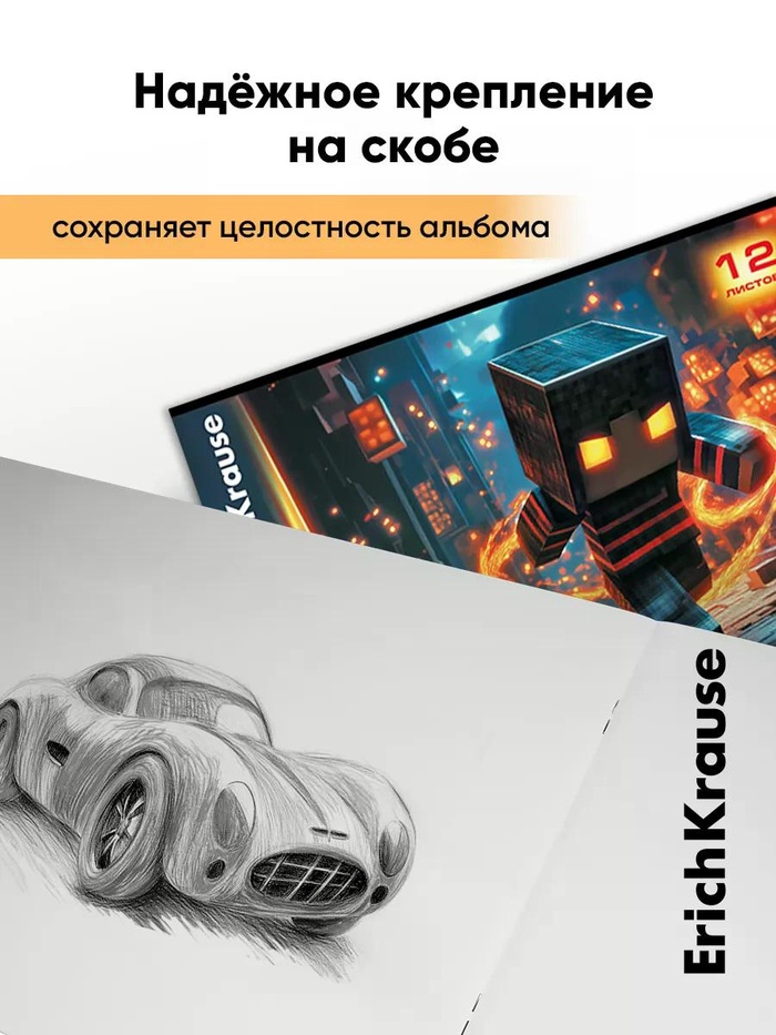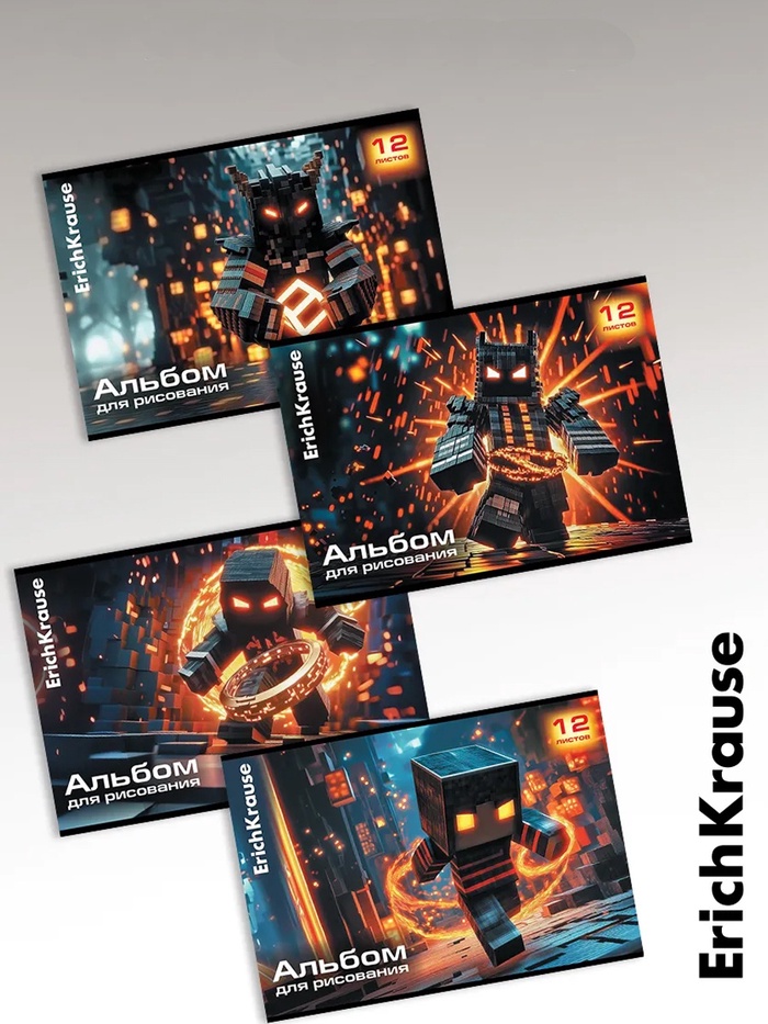 Альбом для рисования А4 ErihKrause Mine Block, 12 листов, на скобе, МИКС