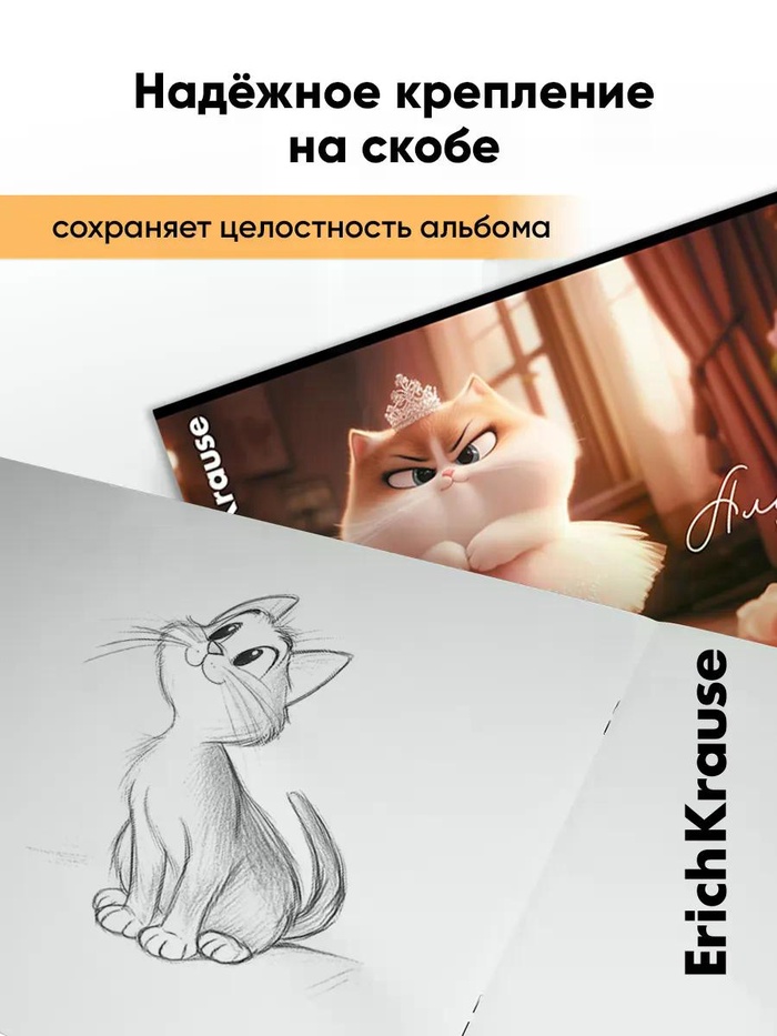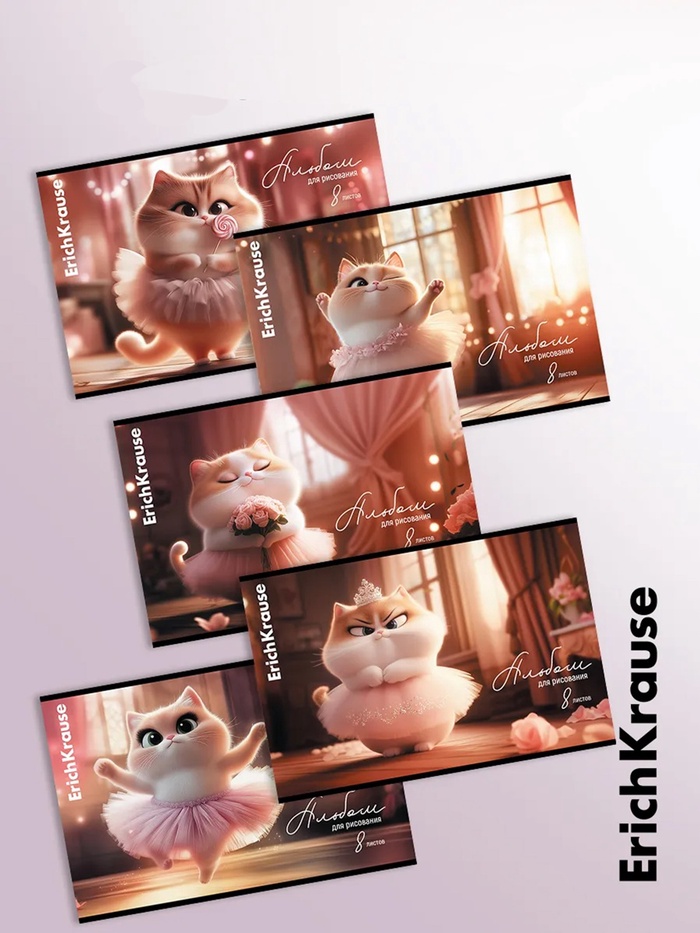 Альбом для рисования А4 ErihKrause Prima Cat, 8 листов, на скобе, МИКС