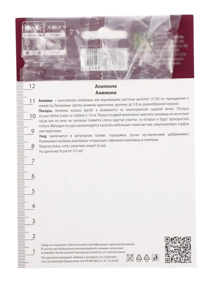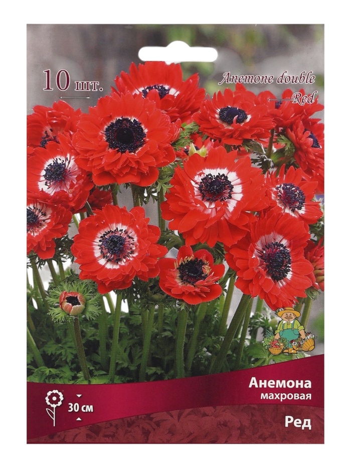 Анемона – многолетнее клубневое или корневищное растение высотой 10-100 см, принадлежит к семейству Лютиковые. Цветки анемоны одиночные, крупные, до 5-8 см, разнообразной окраски.Ред - высота растения 30 см. Цветок махровый, ярко-красный.Месторасположение: солнечный или полутенистый участок.Почва: дренированная, окультуренная садовая почва.Посадка: в мае на глубину 5-10 см. Перед посадкой желательно замочить луковицы на несколько часов или на ночь; на луковице появятся слегка вздутые участки, из которых и будут произрастать побеги. Молодые посадки рекомендуется засыпать небольшим слоем листьев, замульчировать торфом или перегноем.Уход: заключается в регулярном поливе и подкормках. В открытом грунте анемона гибридная не зимует, выкопанные клубеньки после просушки хранят в прохладном месте. Клубни анемон даже в сухом виде сохраняют свою жизнеспособность практически целый год.Использование: для создания эффекта лесных уголков, садов в природном стиле, в миксбордерах, у основания альпийских горок. Некоторые разновидности годятся для срезки.