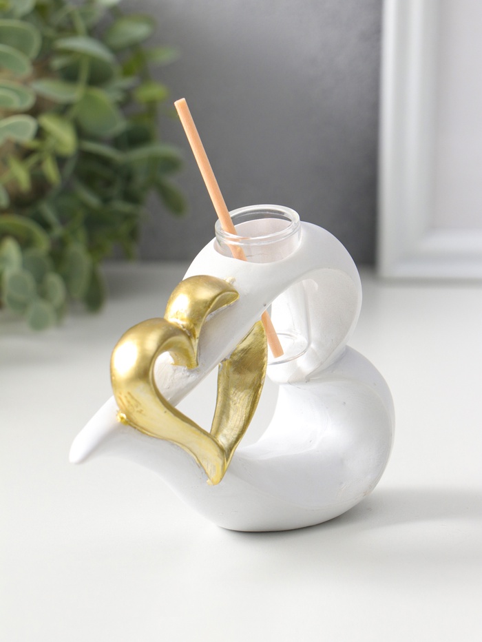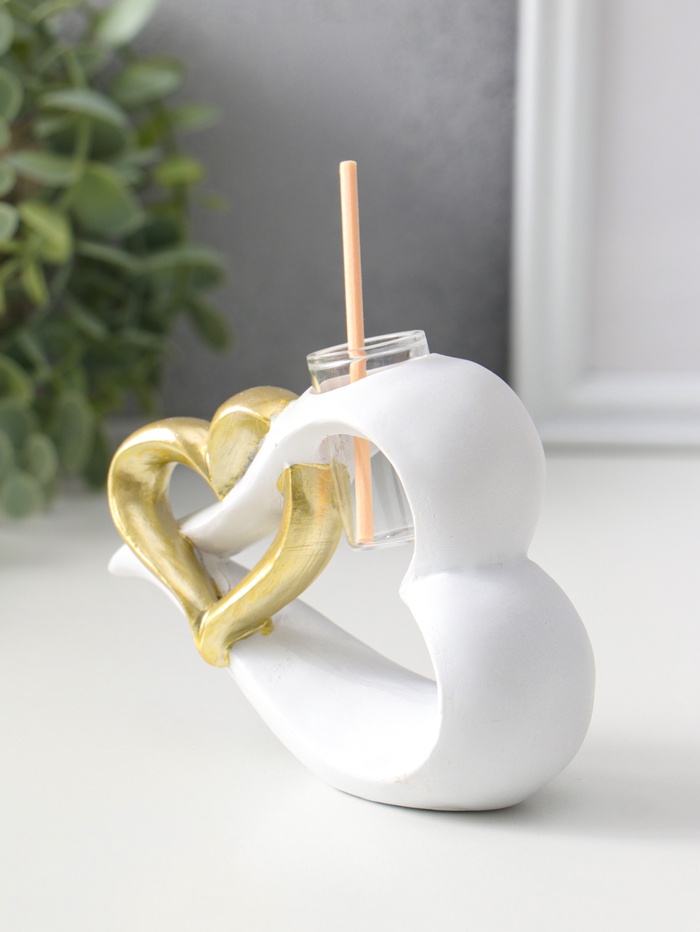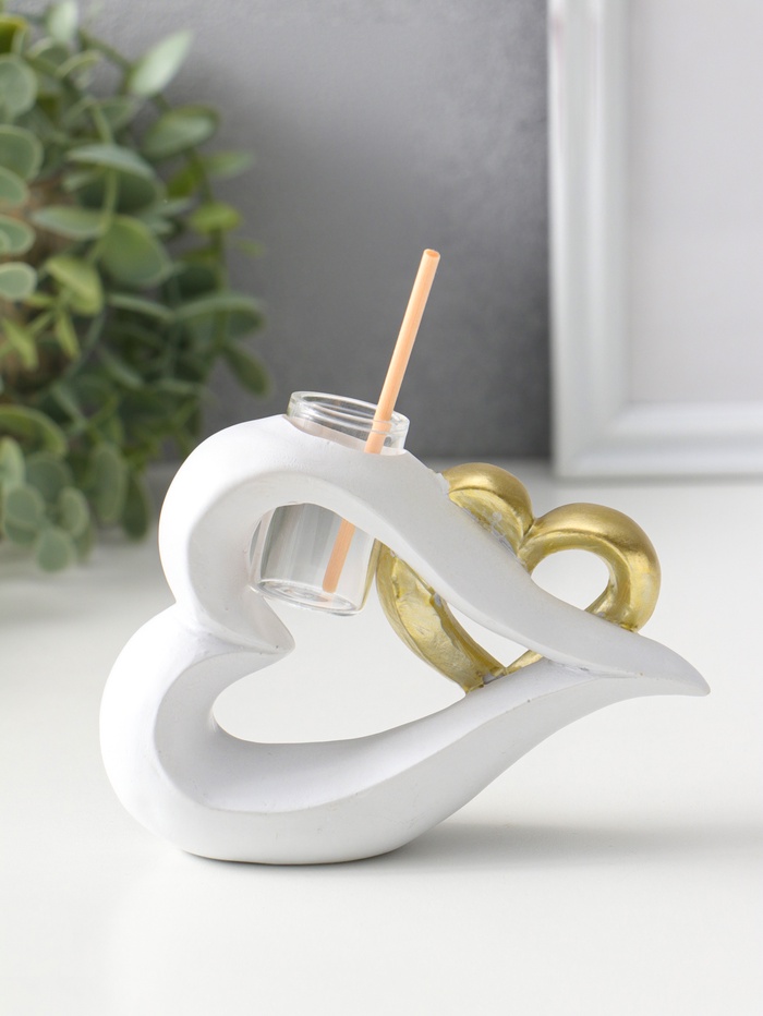 Этот диффузор для эфирных масел — элегантный акцент для интерьера и источник вашего ежедневного благополучия. Он мягко наполняет пространство любимыми ароматами, создавая атмосферу гармонии и уюта. Идеальная форма в виде переплетённых сердец делает его не просто функциональным предметом, а символом тепла и заботы о себе и близких.
