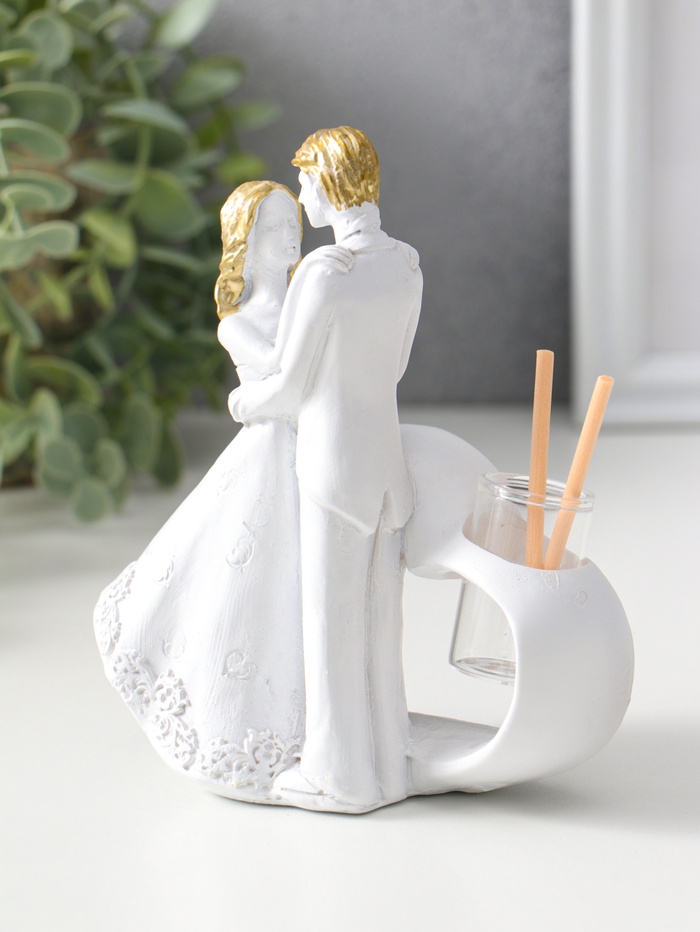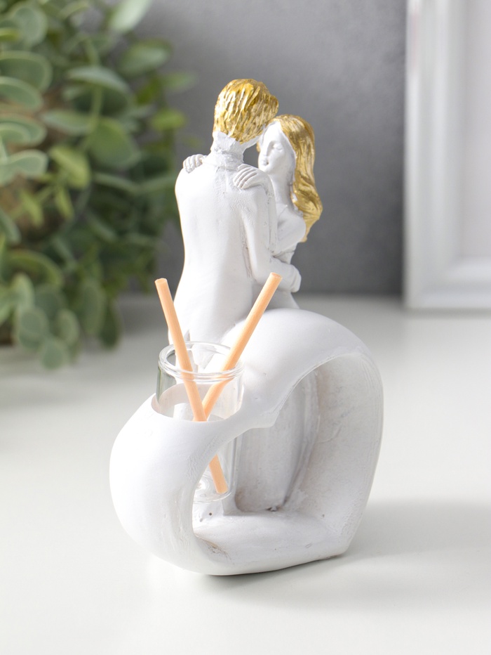 Аромадиффузор для эфирных масел с палочками «Влюблённые у сердца», полистоун, белый с золотом, 6.5×12×14.2 см