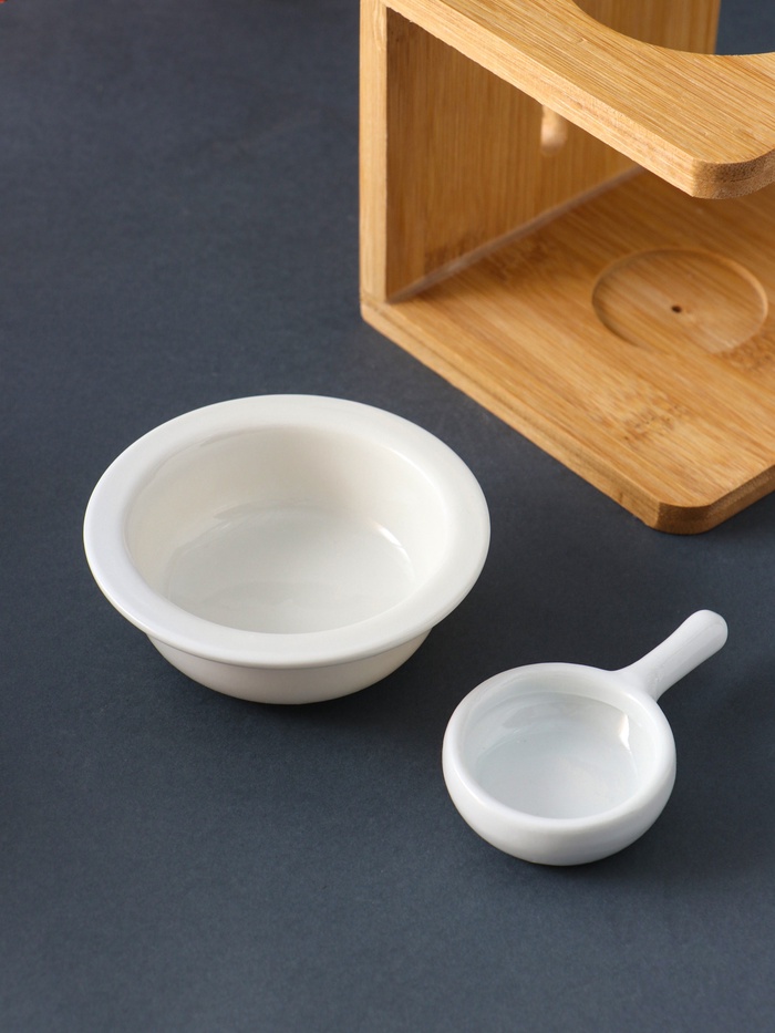 - Комбинация природных материалов: основа из бамбука и чаша из керамики.